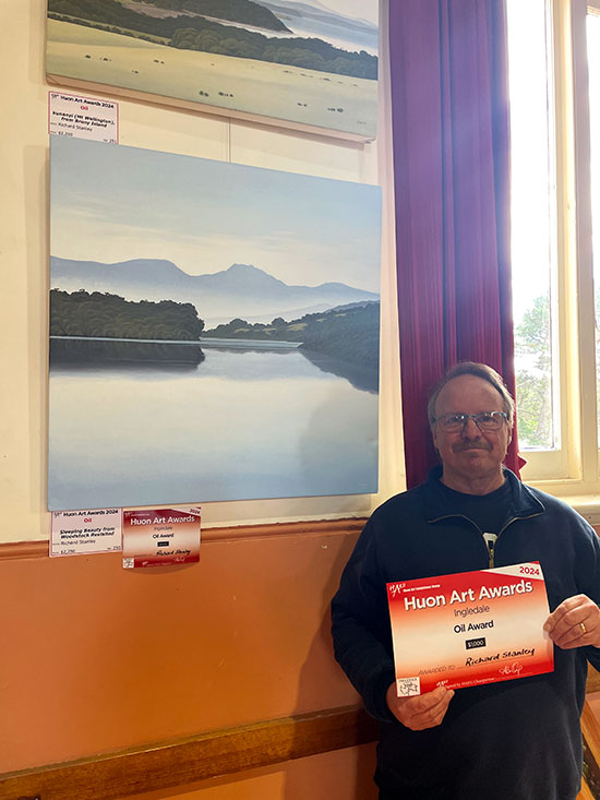 More congratulates for Richard…this time winning the Oil Award for his painting Sleeping Beauty from Woodstock Revisited at the 2024 Huon Art Awards
