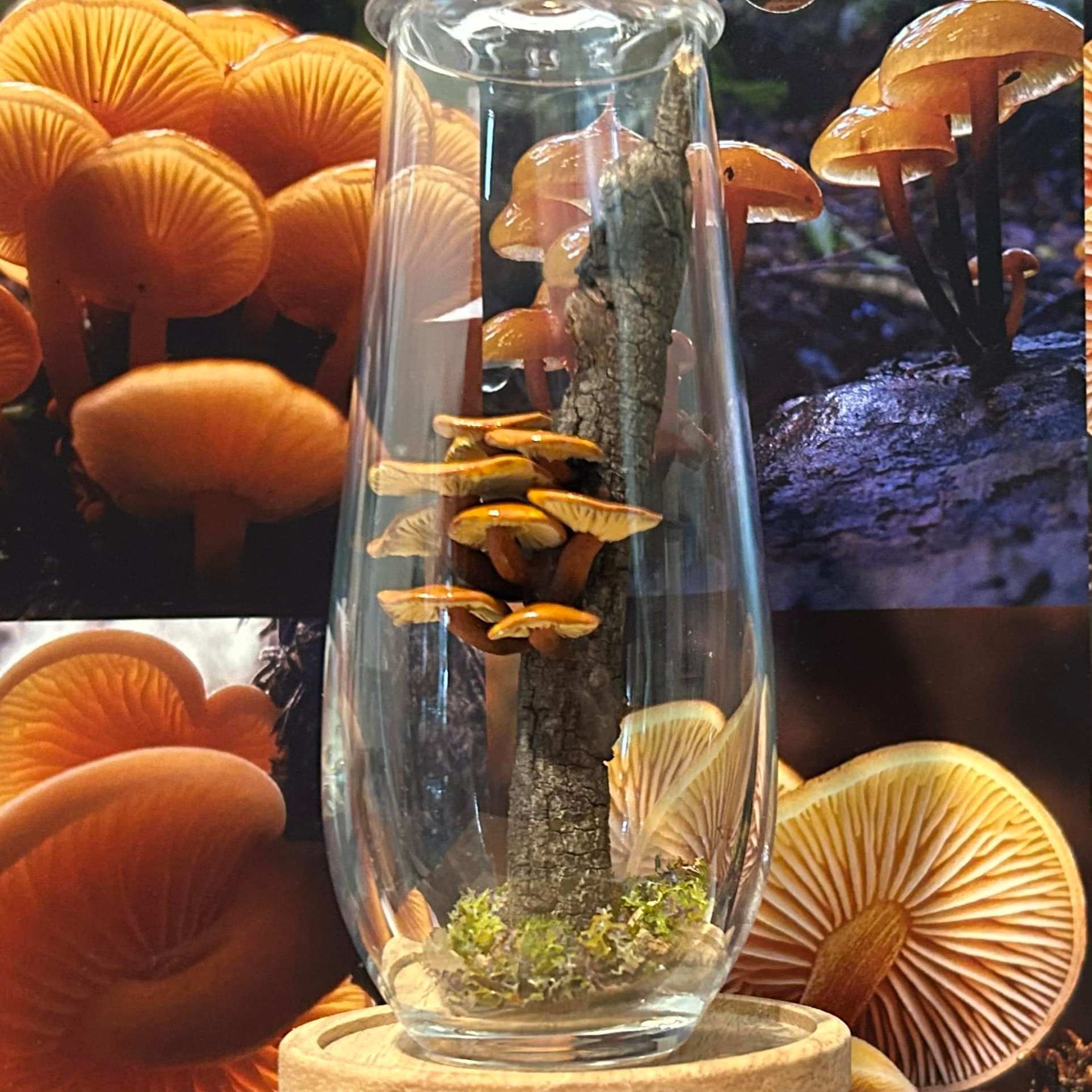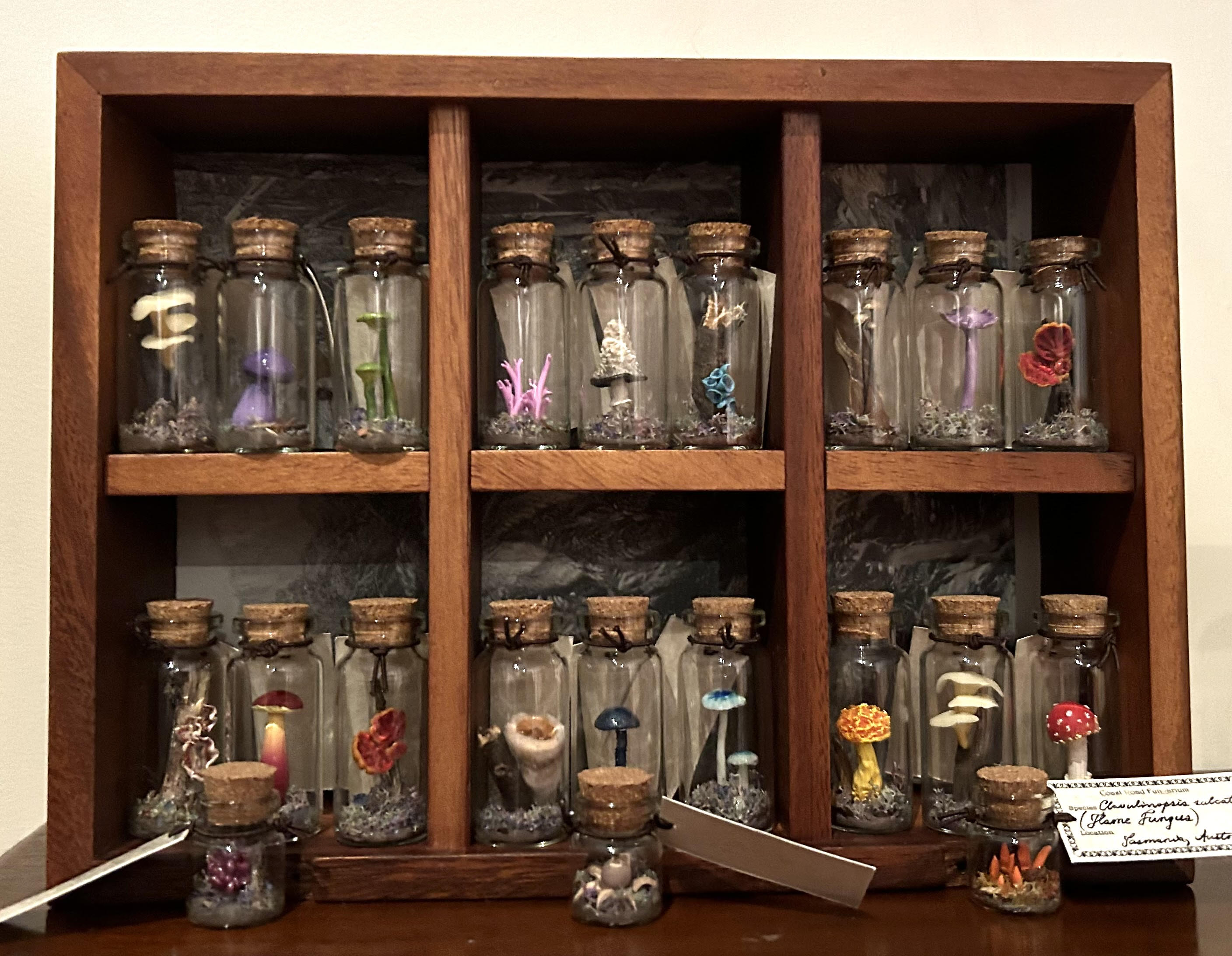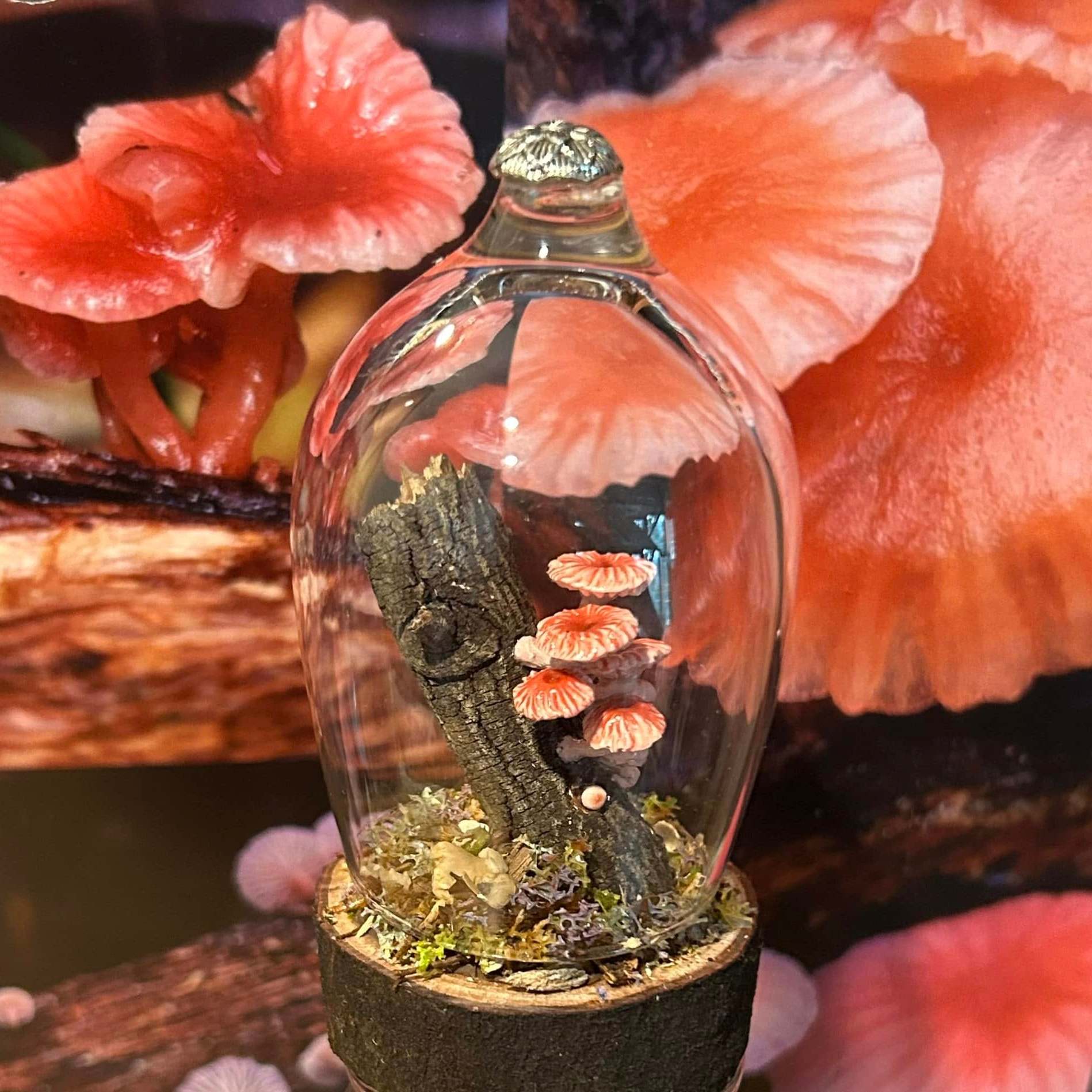 Sculpted Tasmanian fungi specimen bottles for mycology collectors and enthusiasts. Capturing the magic of the ephemeral world of fungi in tiny permanence. Handmade in the Huon Valley.