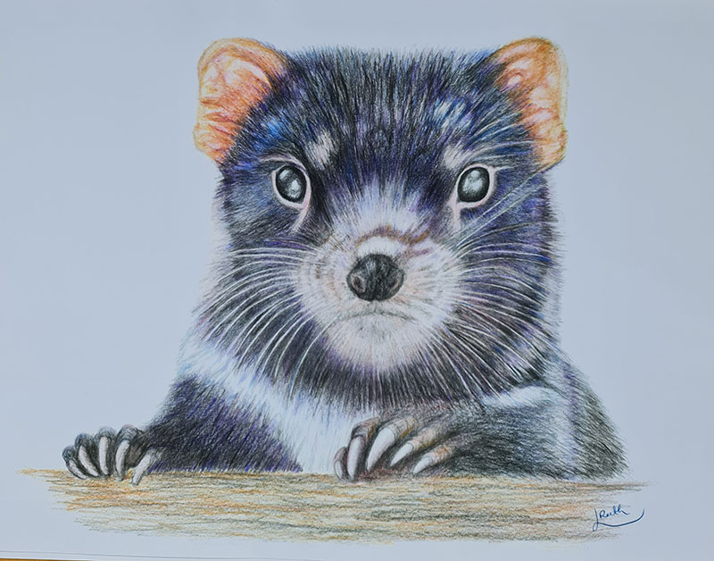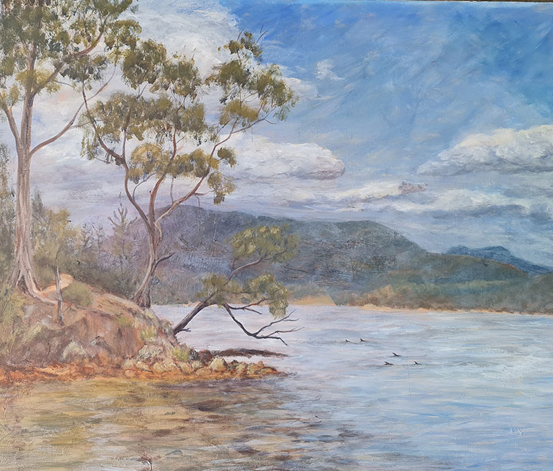 In their respective studios, you can see the processes involved in creating their work: Ruth’s studio is where her watercolour and acrylic paintings come to life; whilst Daren’s shed is where the bigger works are created. Ruth also has a mobile studio set up in a gorgeous Kombi which she can be seen about painting ‘en plein air’. The Kombi will be set up for the Handmade in Cygnet Trail event. The couple attend fortnightly Cygnet Markets in the Kombi with their work for sale.